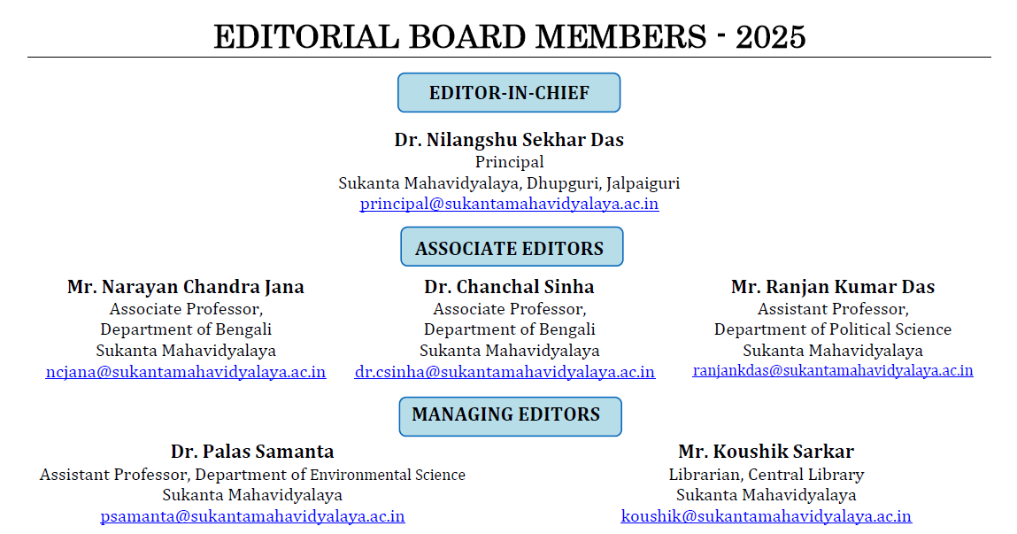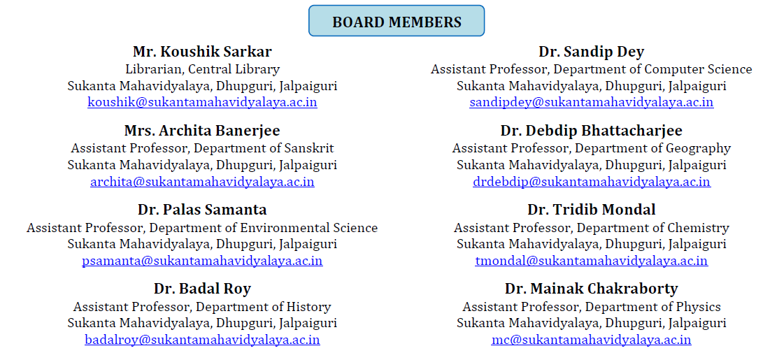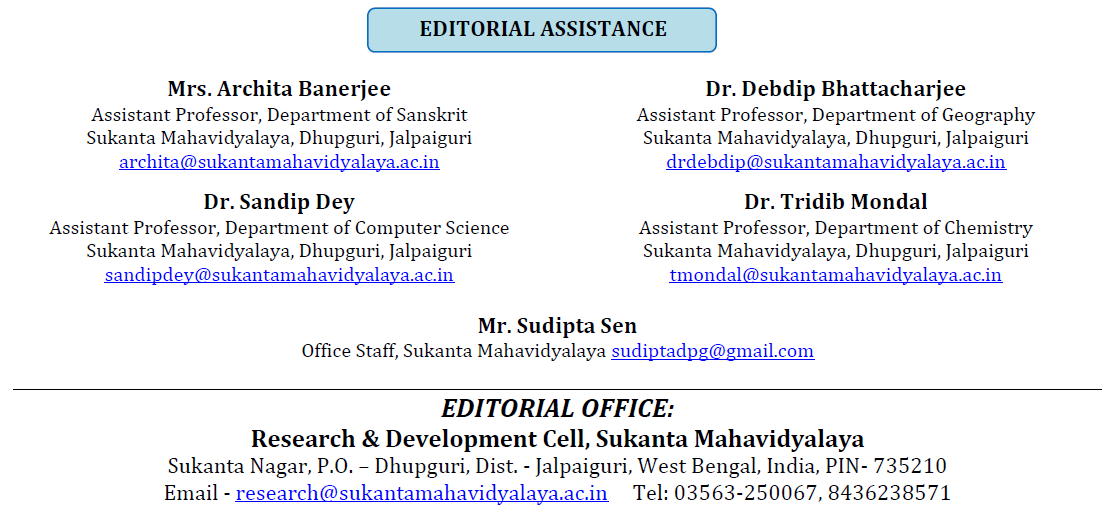 CORRESPONDENCE Sukanta Mahavidyalaya, Ward No.-1, College Para, Sukanta Nagar, P.O. – Dhupguri, Dist. – Jalpaiguri, West Bengal, India, PIN- 735210